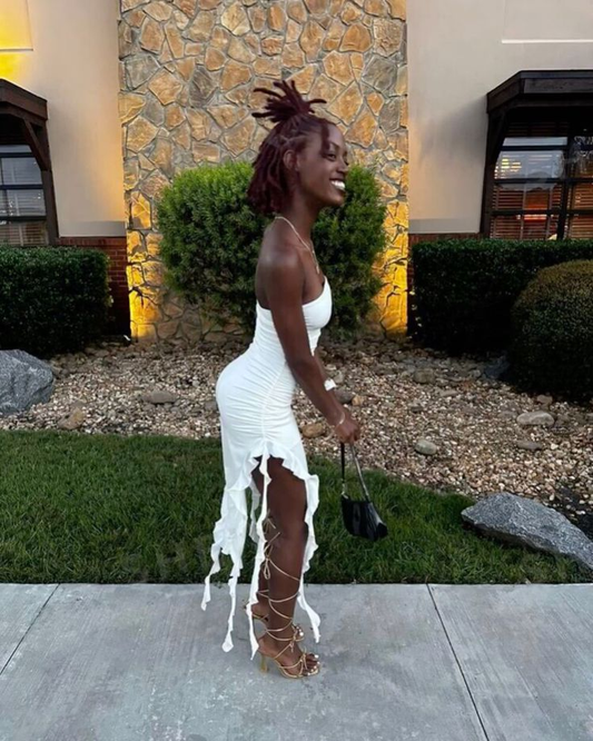 Sexy Trägerloses Weißes Rüschen Abendkleid Geburtstagskleid Y7945
