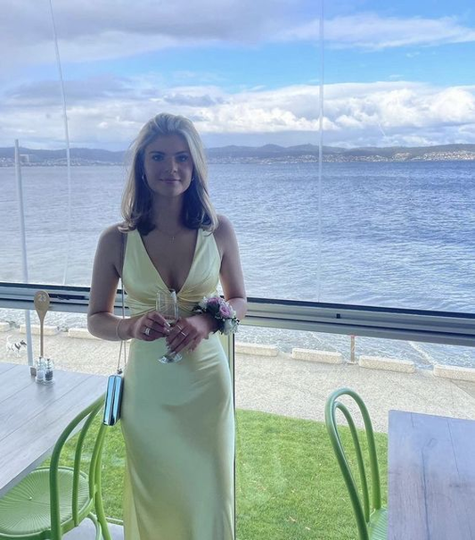 Pastellgelbes Ballkleid mit V-Ausschnitt, Abendkleid Y6369
