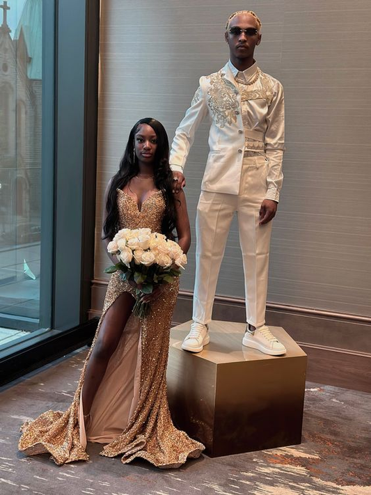 Glitzer Pailletten Abendkleid mit Schlitz Glam Kleid Y6504