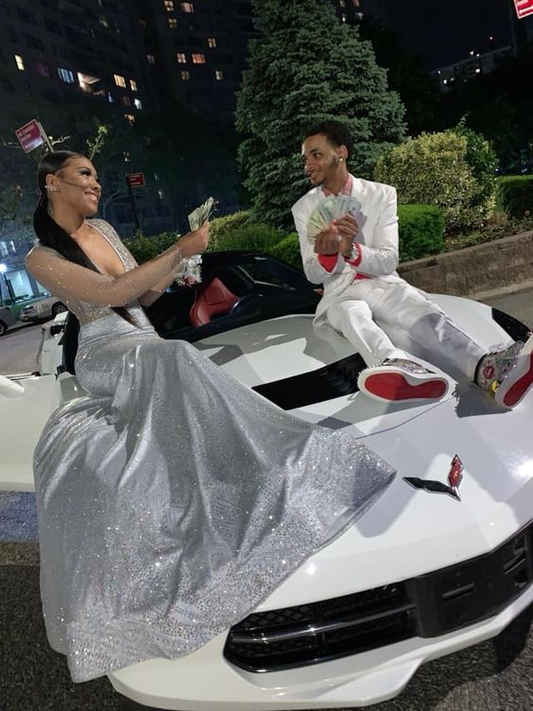 Glamouröses Meerjungfrau-Abendkleid mit V-Ausschnitt, Glam-Kleid Y6495
