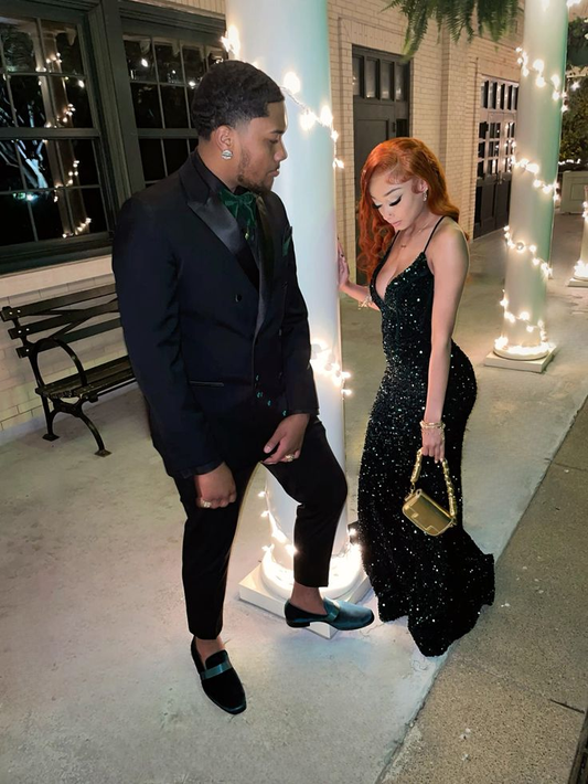 Elegantes schwarzes Pailletten-Meerjungfrauen-Abendkleid Schwarzes Abendkleid Y6486
