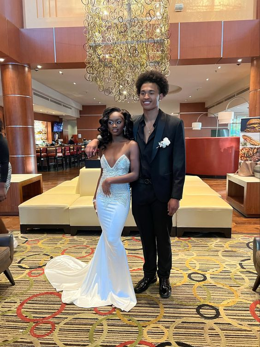 Charmantes weißes Meerjungfrau-Abendkleid Weißes Abendkleid Y6512