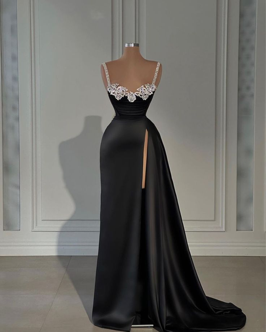 Wunderschönes schwarzes Abendkleid mit herzförmigem Ausschnitt und Trägern Y6666