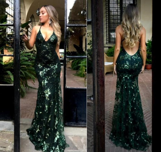 Grünes Pailletten-Ballkleid, neues Design, glitzerndes Abendkleid, Y6652