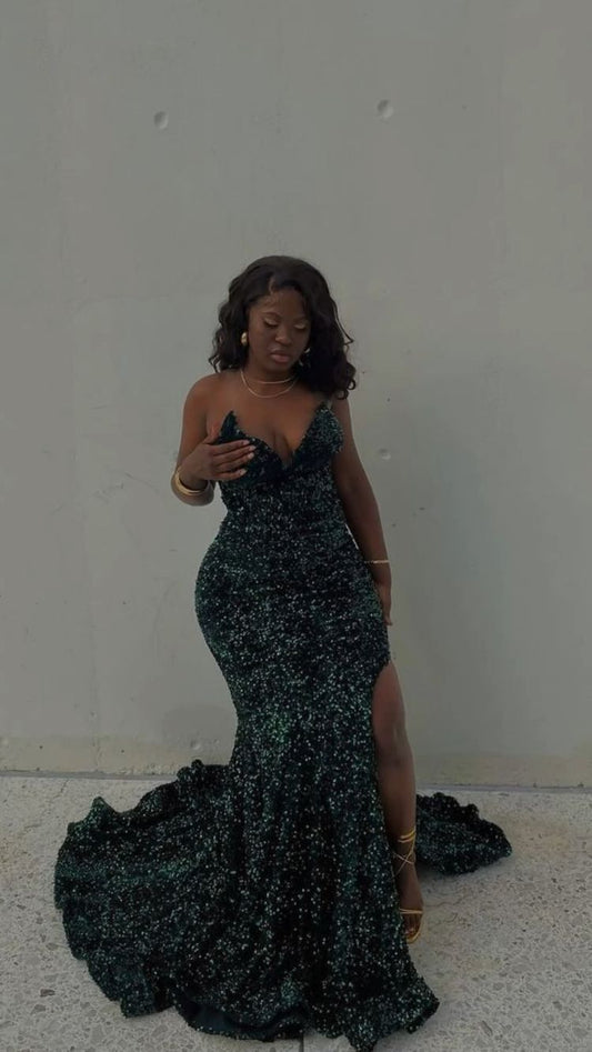 Smaragdgrüne Ballkleider lang, glitzernde Pailletten Abendkleider Y1821
