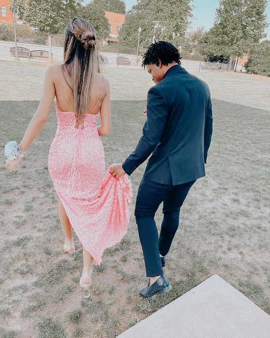 Rosa Pailletten Lange Abendkleider Mit Kreuzrücken Y625