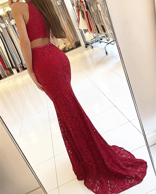 Elegante Burgunder Meerjungfrau Spitze Abendkleider Y771