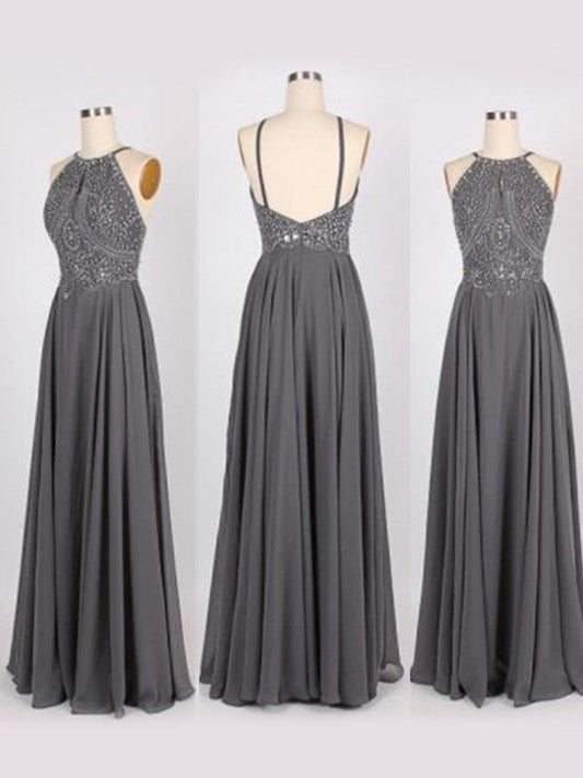 A-Linie/Elegant Neckholder Ärmellos Perlen verziert Chiffon Abiballkleider