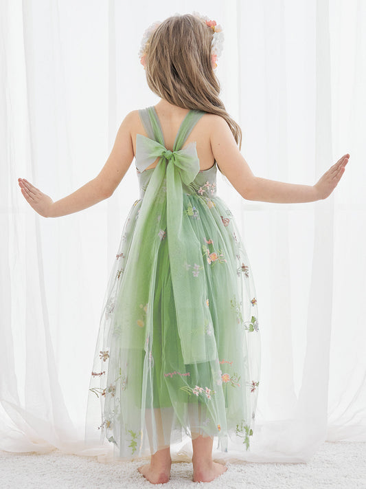 Knielanges A-Linien-Blumenmädchenkleid aus Satintüll