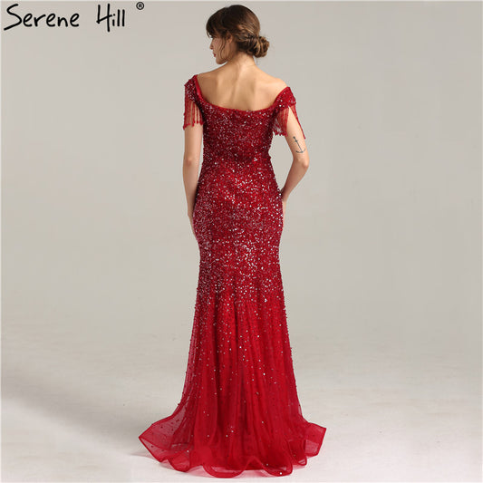 Luxuriöses Abendkleid aus Saudi-Arabien, weinrot, mit Perlen besetzt, Spaghettiträger, bodenlang, für formelle Anlässe, LA70600A