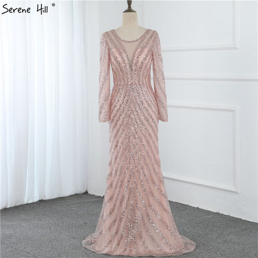 Luxus Rosa Oansatz Meerjungfrau Abendkleider 2025 Dubai Langen Ärmeln Glitter Abendkleid LA70248