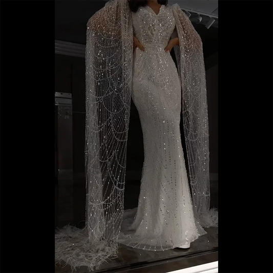 Meerjungfrau-Abendkleider mit Cape-Ärmeln 2025 LA71889