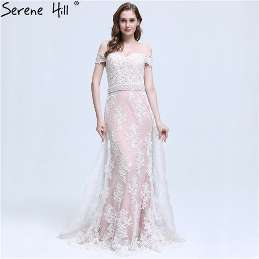 Luxuriöses schulterfreies Dubai-Abendkleid in Silbergrau LA72762