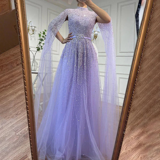 Luxuriöses Champagner-Dubai-Meerjungfrauen-Abendkleid mit Cape LA70910