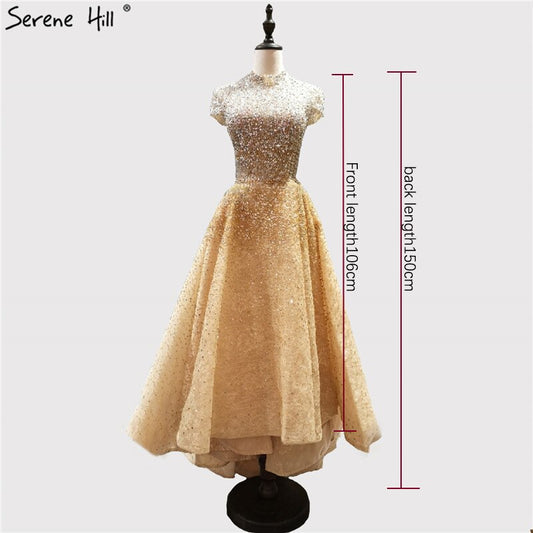 Gold High Neck Luxus Asymmetrische Abendkleider 2025 Perlen Pailletten Ärmellose Abendkleider LA60757