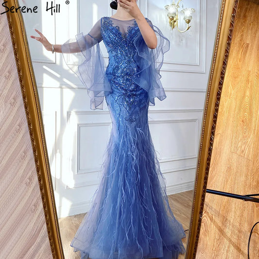 Grüne Capes Ärmel Luxus Abendkleider Kleider 2025 Perlen Feder Elegant Für Frauen Party LA71521