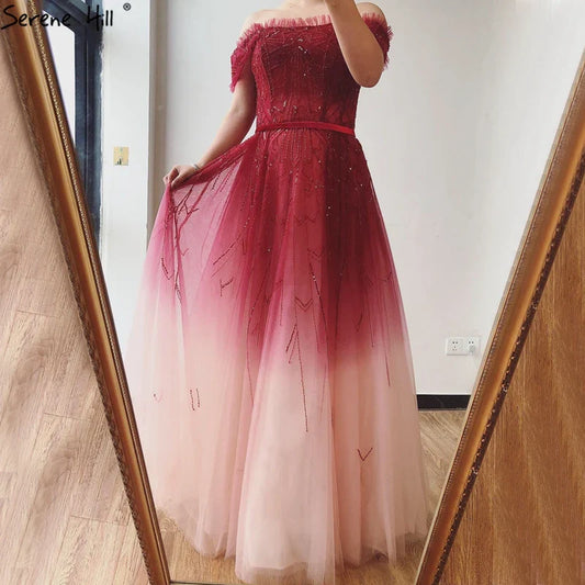 Allmähliche Veränderung Rot A-Linie Sexy Abendkleider 2025 Perlen Pailletten Boot-Ausschnitt Abendkleid Design LA70516