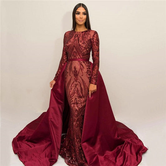 Grüne Lange Ärmel Luxus Meerjungfrau Abendkleid Applikationen Pailletten Mode Mit Zug Abendkleider 2025 LA6613