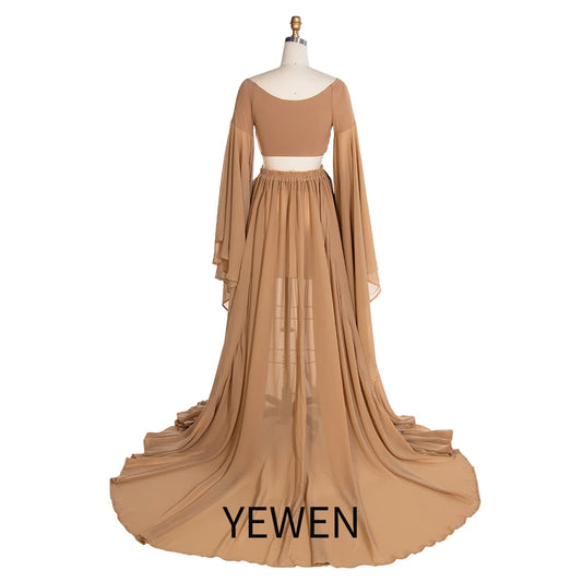 Herbst Umstandskleid für Bilder Rüschenärmel Umstandskleid mit langer Schleppe Boho-Kleid für Fotoshooting SY243111