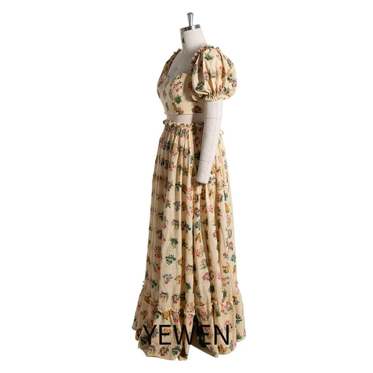 Zweiteiliges Umstandskleid mit Blumendruck und Puffärmeln, Boho-Fotoshooting-Kleid mit elastischer Taille, Fotografie-Requisiten SY240078