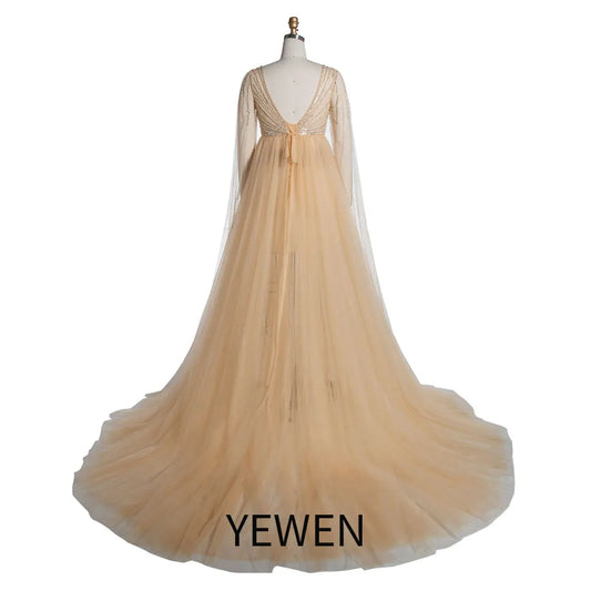 Elegantes One-Shoulder Cape Sleeve Maxikleid Weiches Mesh Umstandskleid Fotoshooting Schwangerschafts-Shooting-Kleid SY18811-1