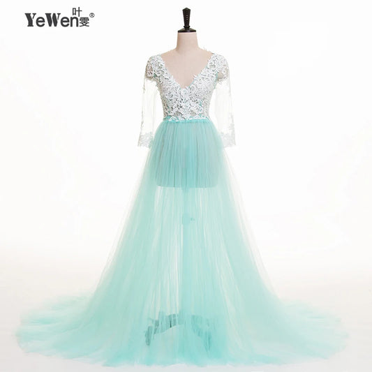 Stickerei Tüll Robe Umstandskleid für Fotoshooting Ballkleid Schlitz Schwangerschaft Baby Shower Kleid
