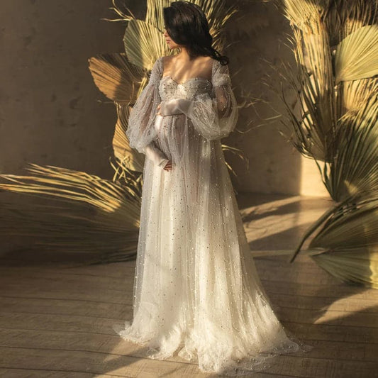 Perlen Umstandskleid für Fotoshooting Perlen Tüllkleid SY033