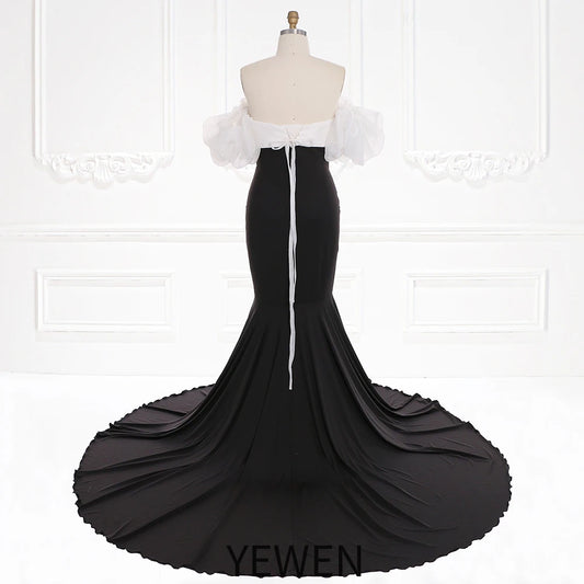 Umstandskleid im Meerjungfrauen-Stil mit Puffärmeln, dehnbarem Stoff für Fotoshootings, Umstandskleid 2025, Babyparty-Kleid, Sunnderly SY231110