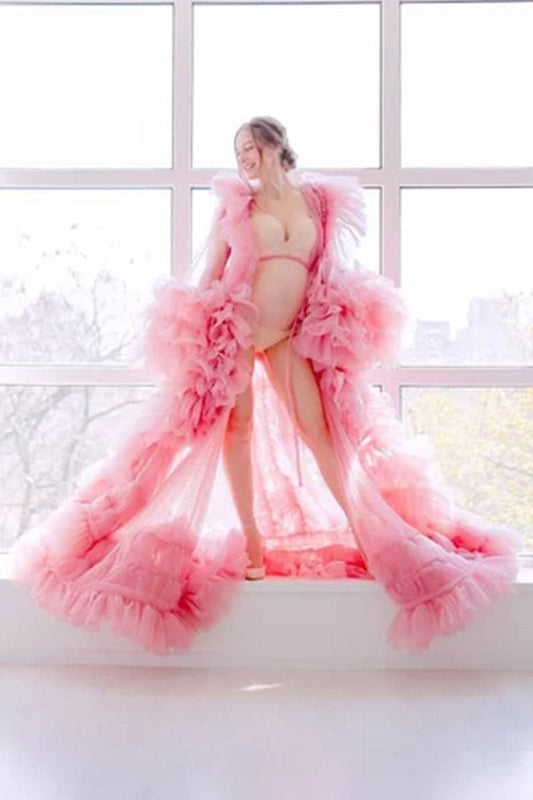 Puffy Tüll Robe Umstandskleid für Fotoshooting Transparente Braut Dessous Hochzeitskleid Lange Baby Shower Schwangerschaftskleider