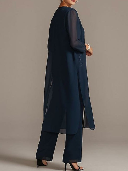 Chiffon-Hosenanzüge mit U-Ausschnitt für die Mutter der Braut