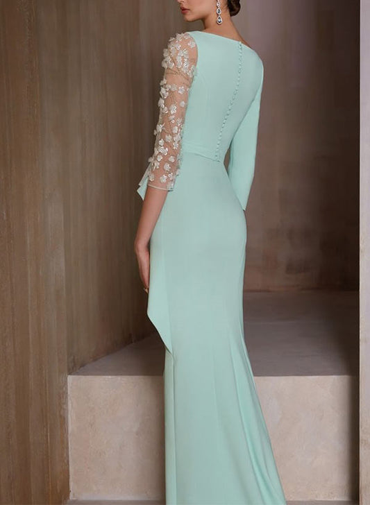 Etui-/Säulen-Kleid mit V-Ausschnitt, 3/4-Ärmeln, bodenlang, Kleider für die Brautmutter mit Applikationen
