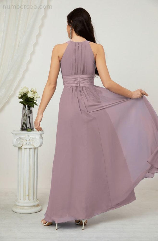 Sunnderly Formales Partykleid Chiffon Neckholder Lange Ärmellose Brautjungfernkleider SY2802
