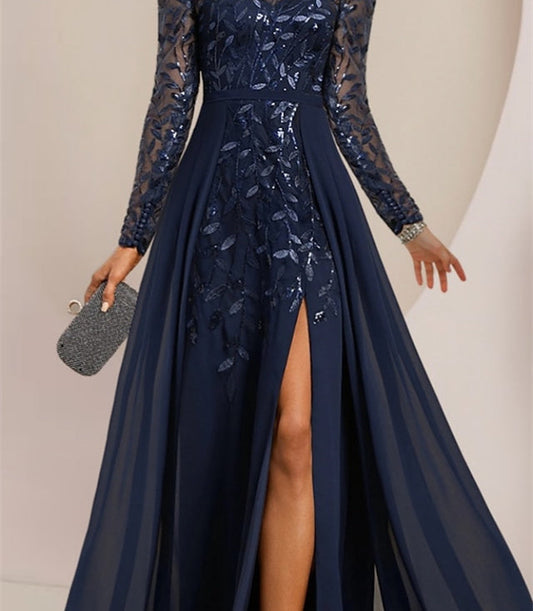 A-Linie/Princess-Linie, U-Ausschnitt, bodenlang, Kleider für die Brautmutter mit seitlichen Schlitzen, Rüschen und Pailletten