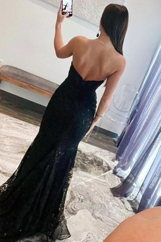 Tulle Mermaid Lace Appliques Sweetheart Keyhole Long Prom Dress