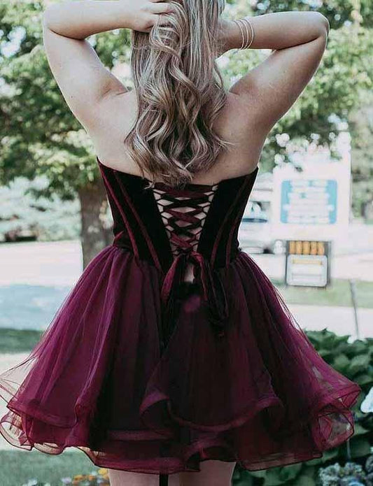 Stilvolles kurzes A-Linien-Ballkleid aus Tüll mit Herzausschnitt und Schnürung