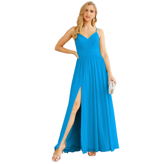 Spaghettiträger Brautjungfernkleider für Frauen Chiffon Lange formelle Party- und Abschlussballkleider