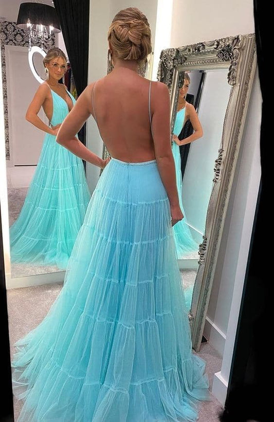 Tüll-Schichten Abendkleider V-Ausschnitt Ballkleider SYP17