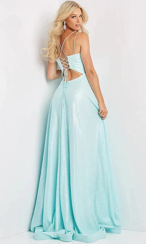 Hellblaues Pailletten-Ballkleid mit Schlitz SYP151