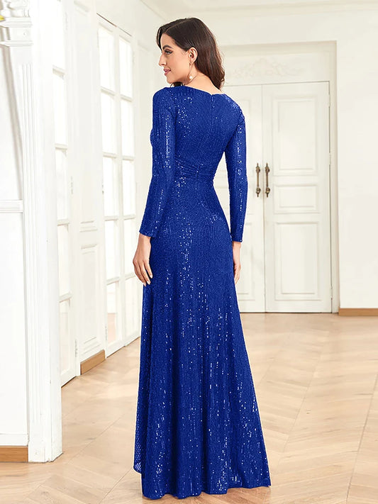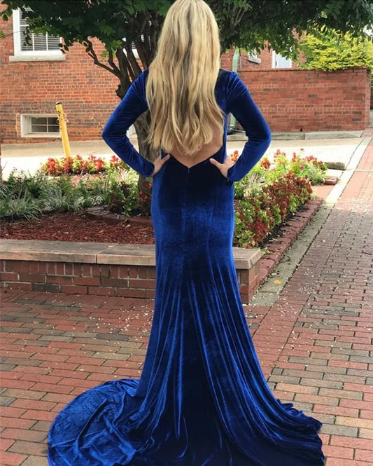 Langärmlige Ballkleider Königsblaues Abendkleid mit Ärmeln