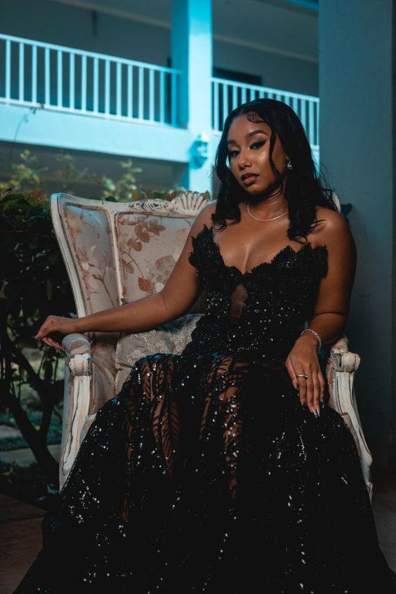 Elegantes Schwarzes Langes Abendkleid Schwarzes Glamourkleid Y6639