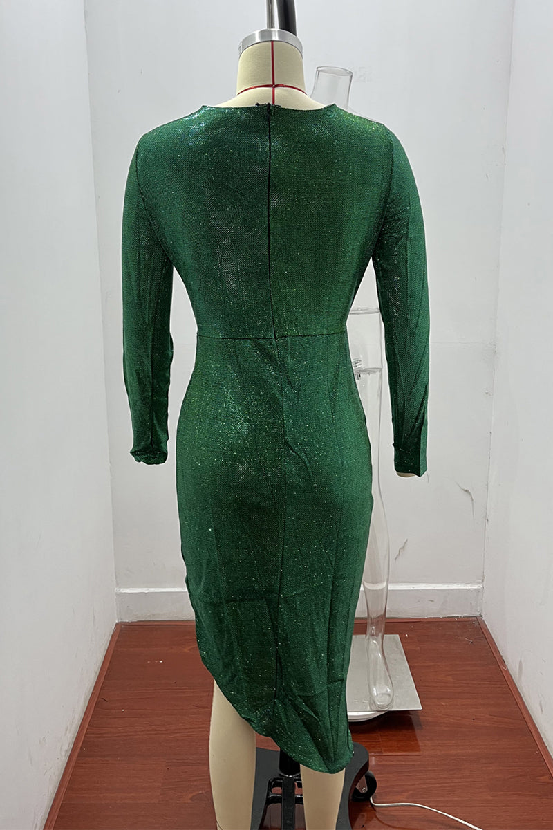 Fashion Elegant Solid Patchwork Sequined V Neck Evening Dress Dresses(5 Colors)