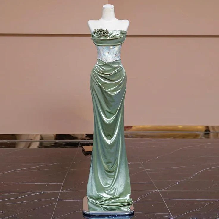 Glamouröses trägerloses Meerjungfrau-Abendkleid mit Plissee, formelles Ballkleid Y7989