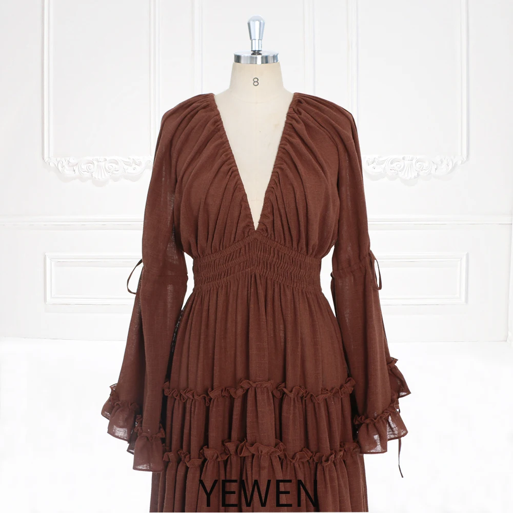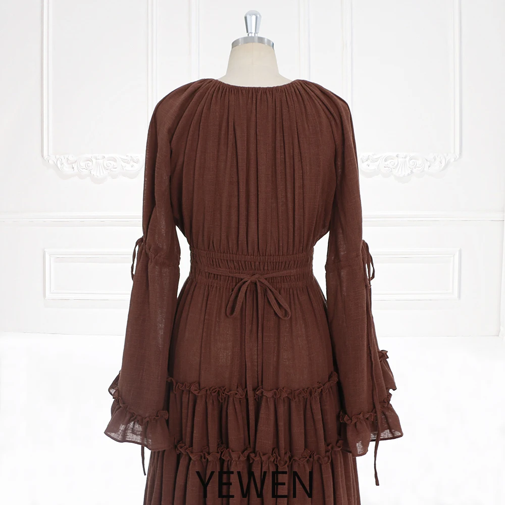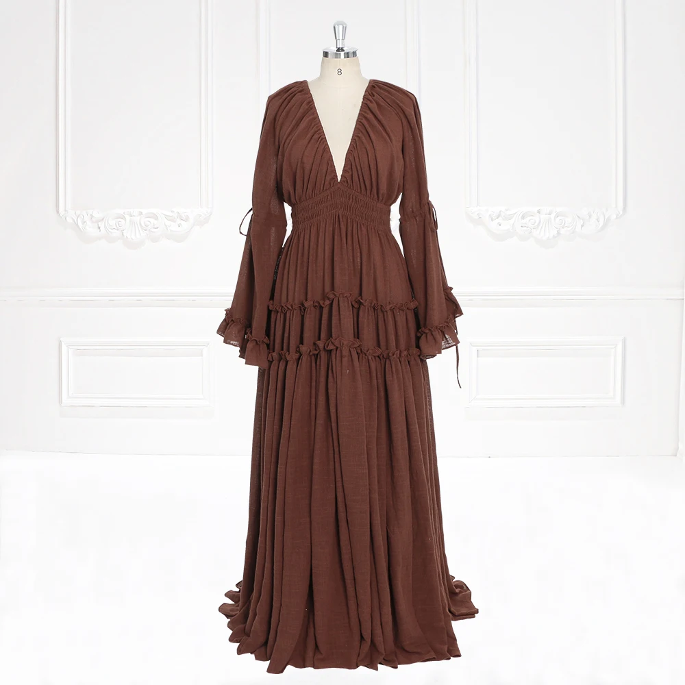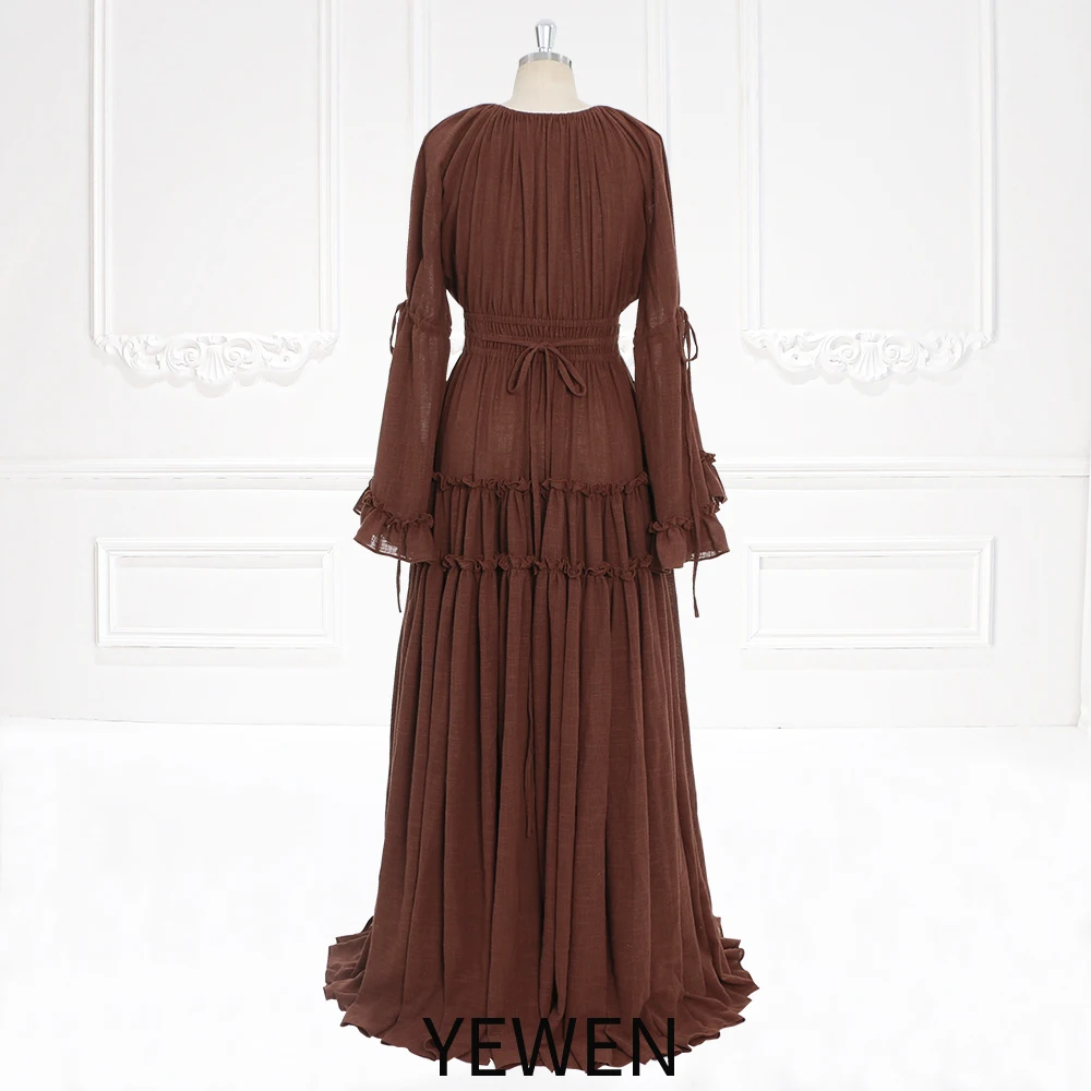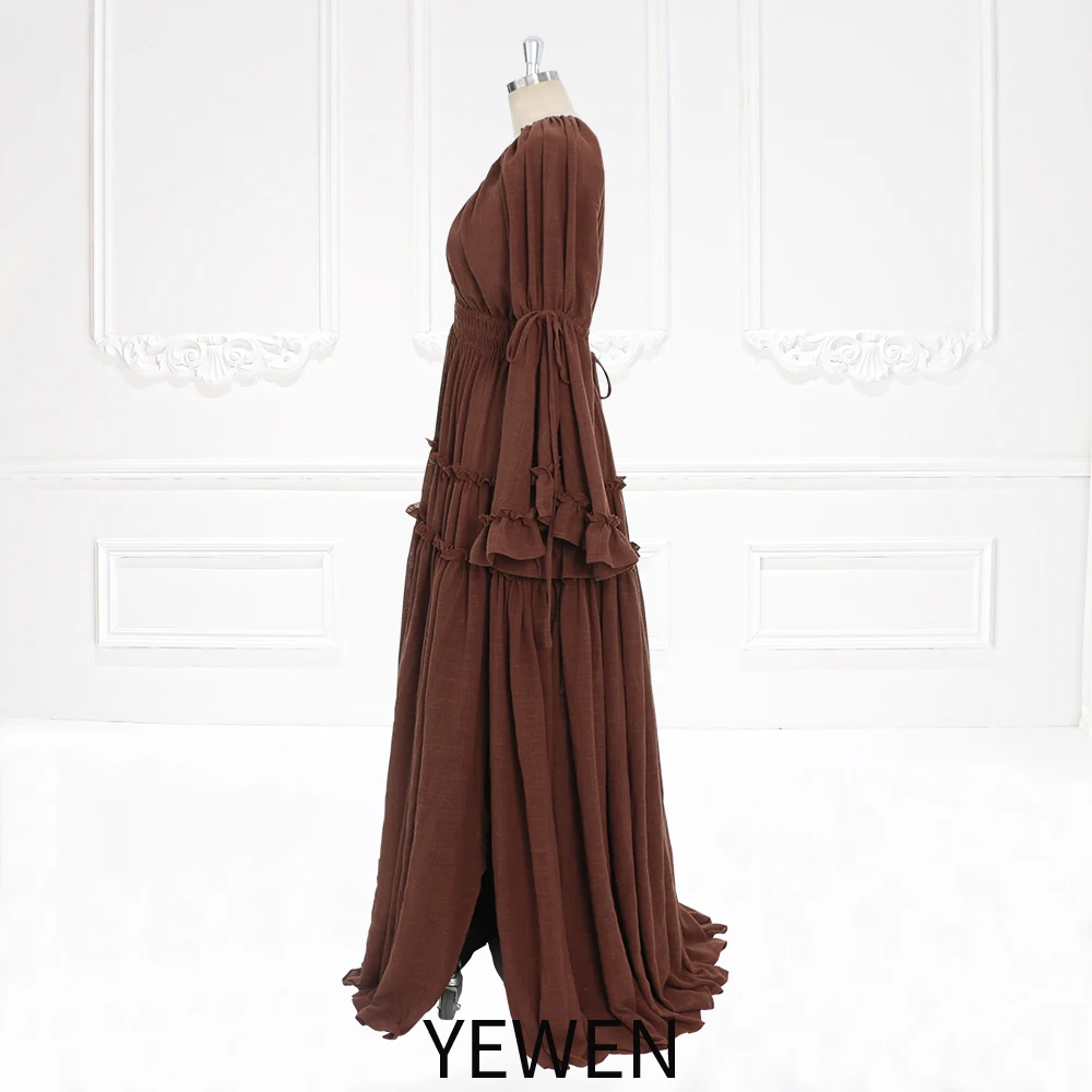 Langärmliges Maxikleid aus Baumwolle für Damen, seitlicher Schlitz, für Fotoshootings, Umstandskleid für Fotoshootings, YEWEN SY231092