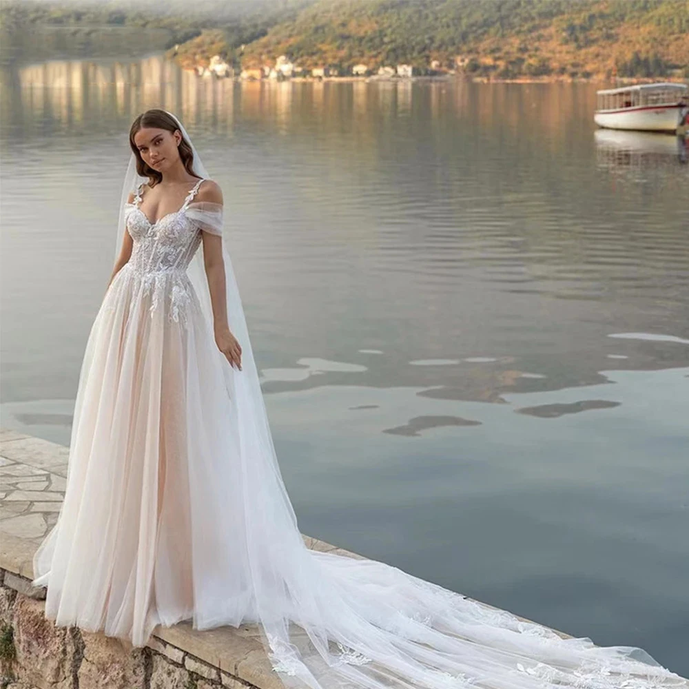 Luxus Off Schulter Ärmellose Sexy Spitze Wischen Schöne Brautkleider Boho Backless Charming Einfache Brautkleider Neue 2023