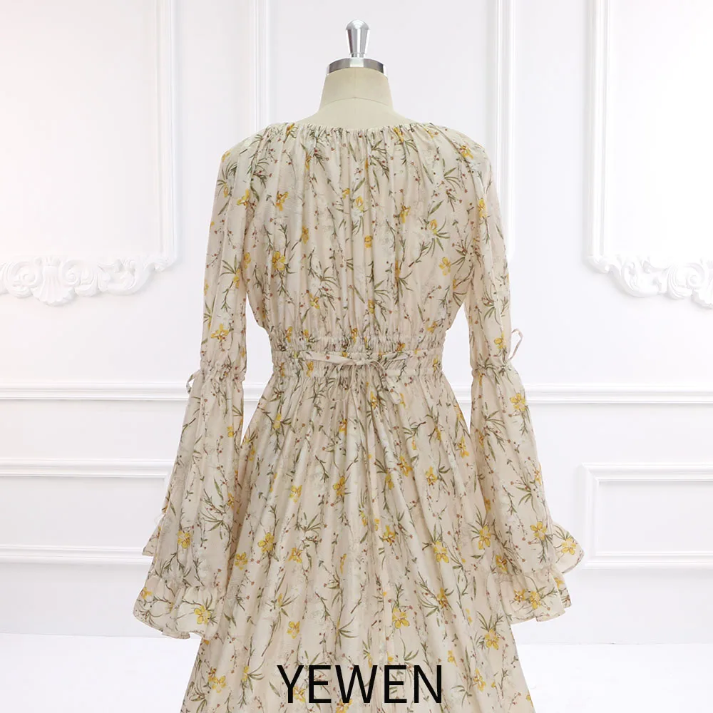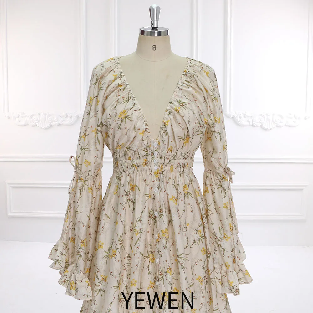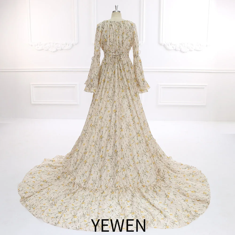 Neues Boho-Maxikleid mit Blumendruck und langen Ärmeln aus Baumwolle, schickes Schwangerschafts-Shooting-Kleid, Fotografie-Requisiten, YEWEN SY211202