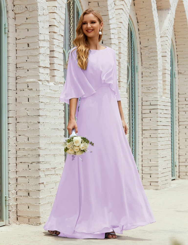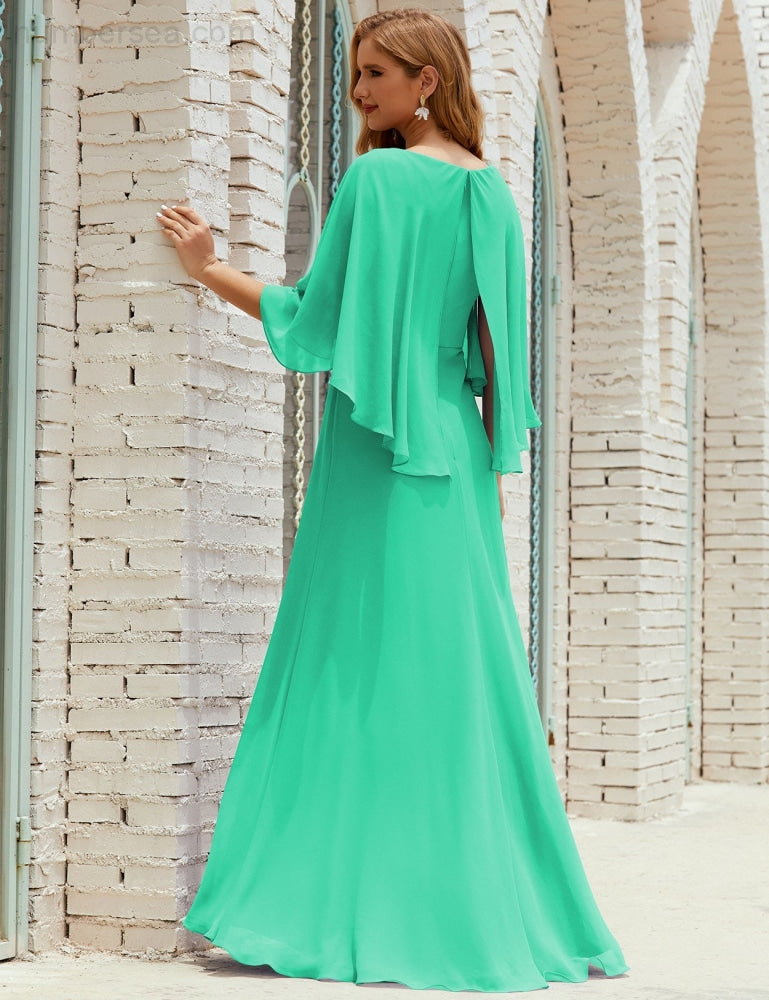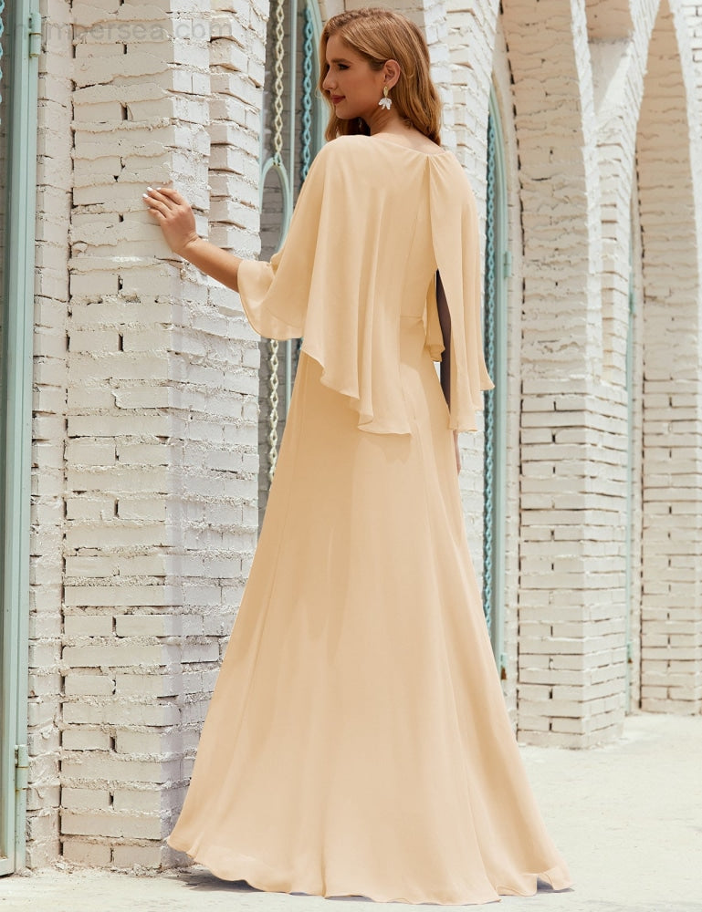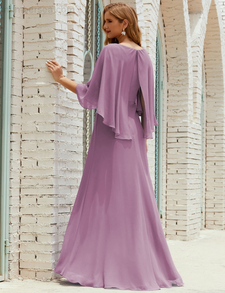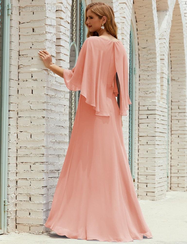 Sunnderly Brautjungfernkleid für Damen, langärmelig, V-Ausschnitt, Chiffon, formelles Hochzeits- und Partykleid, SY28018