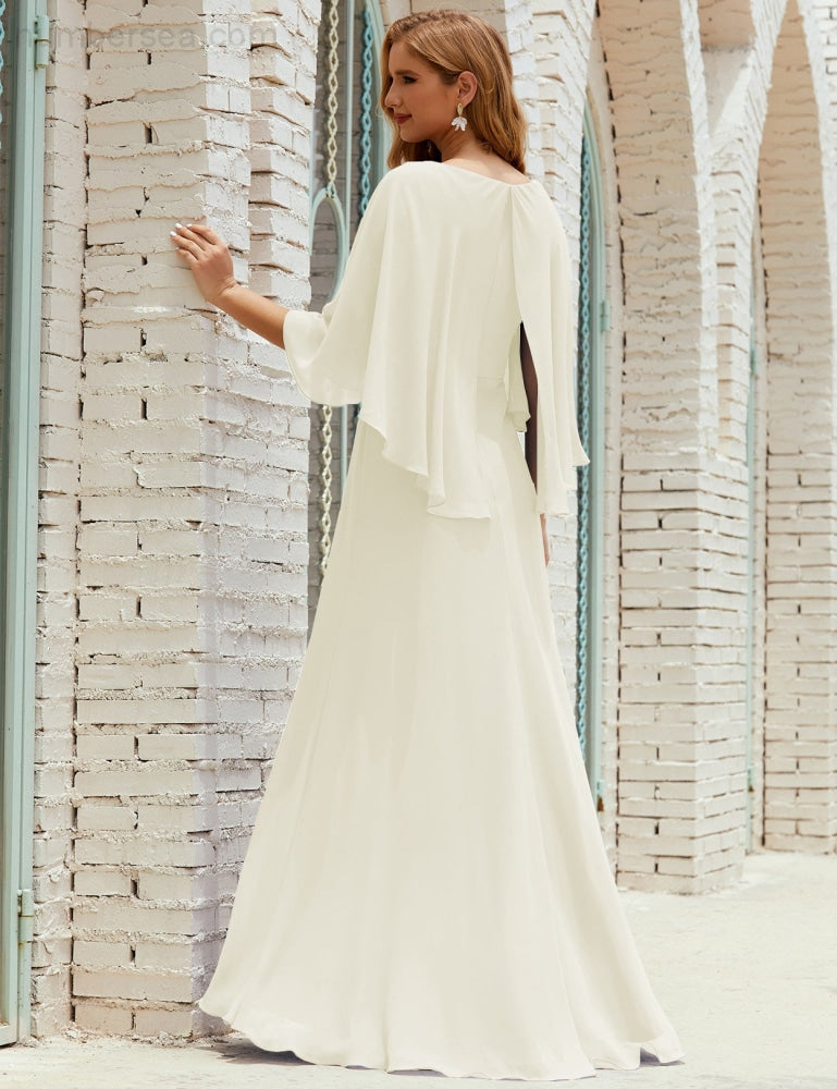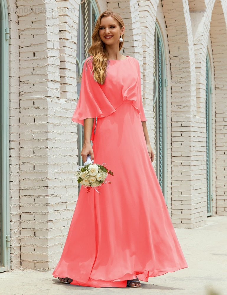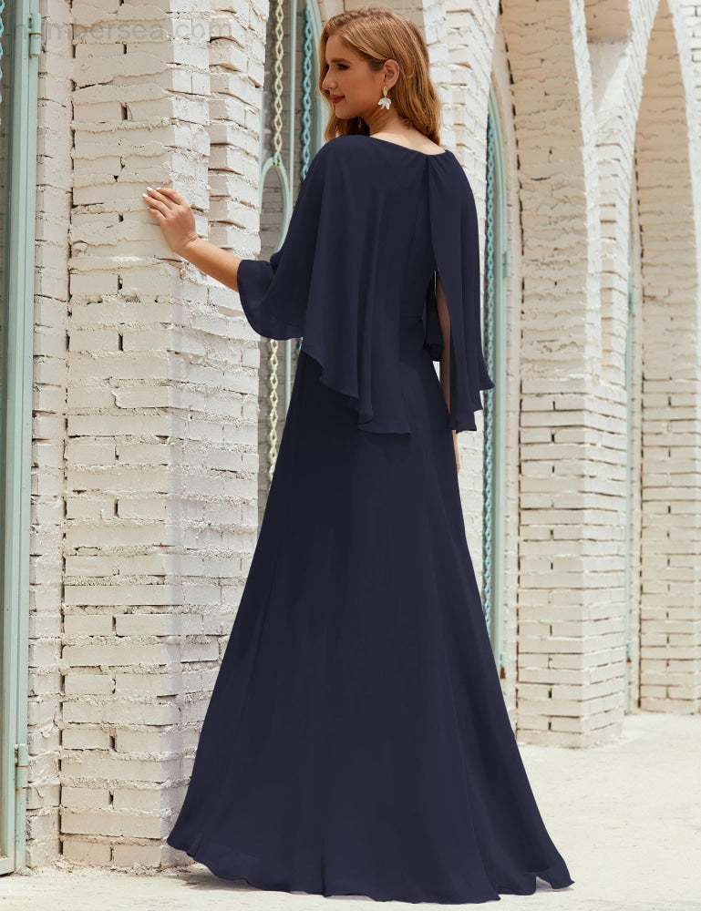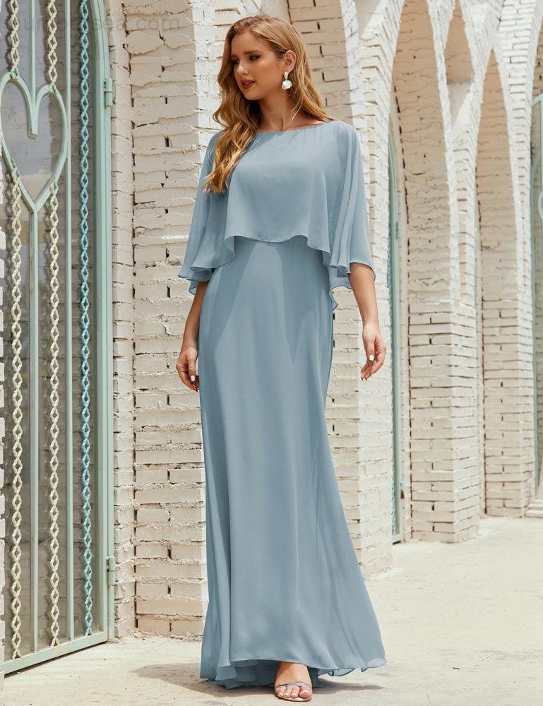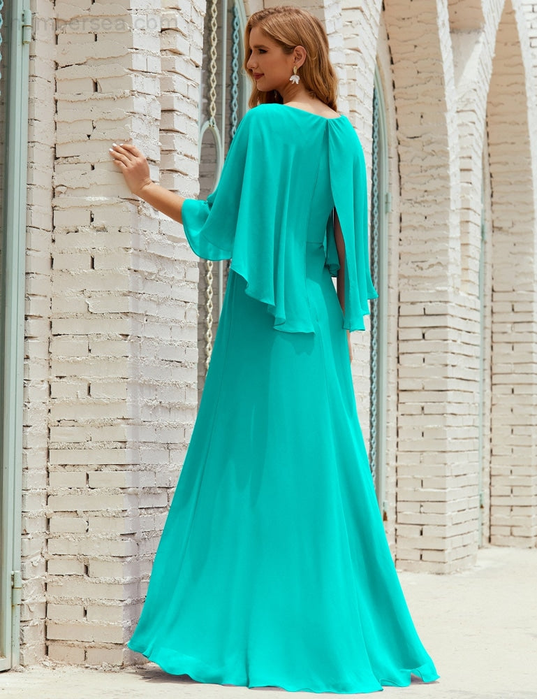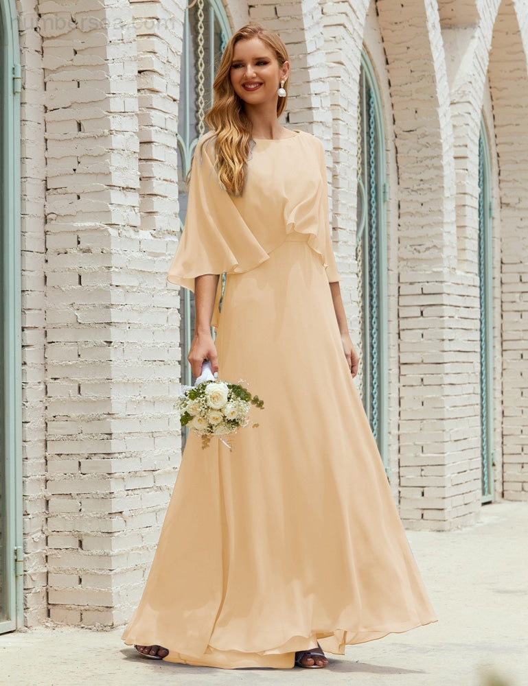 Sunnderly Brautjungfernkleid für Damen, langärmelig, V-Ausschnitt, Chiffon, formelles Hochzeits- und Partykleid, SY28018