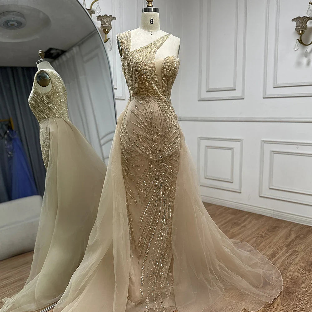 2025 Nude Meerjungfrau-Grün Abendkleid mit elegantem One-Shoulder-Überrock für formelle Anlässe LA72031A