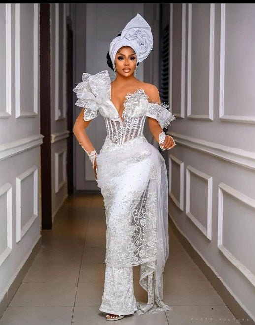Vestido de fiesta de sirena asimétrico con encaje y cuentas de lujo, vestido de fiesta de noche ajustado