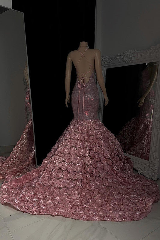 Hermoso vestido de fiesta largo de sirena con lentejuelas y sin mangas
